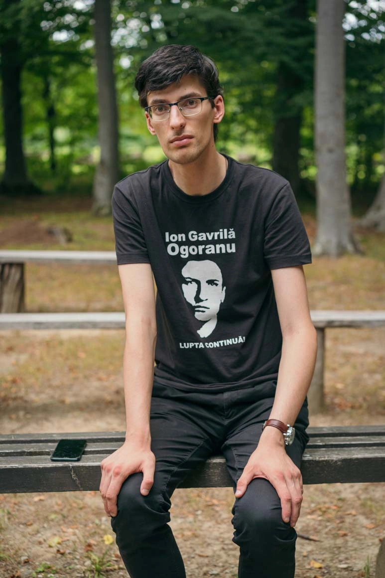 În 2018, la întoarcerea de la o comemorare din Constanța, l-am cunoscut pe Dragoș. Avea pe atunci 32 de ani și lucra într-o multinațională din București. Dragoș e primul simpatizant legionar pe care l-am auzit că vorbește despre problemele tinerelor generații – depresia și stresul. După el, soluțiile ar fi mai multe repere morale și mai multă disciplină. Nu crede că oamenii trebuie să fie agresivi ca înainte, dar simte că pe vremea aia oamenii își țineau cuvântul, erau „mai bărbați". În urmă cu zece ani îl întâlnise pe nepotul lui Codreanu, Nicador Florea Codreanu, la asociația lui, Acțiunea Română. Îi plăcea prezența de soldat a nepotului, rece și dură. Dar erau prea radicali. „Veneau mulți frustrați care trăiau într-o lume romantică a anilor ‘30. Ziceau că vor să împuște oameni. Acuma nu mai merge să te lupți cu revolverul”. Acolo l-a cunoscut pe secretarul Fundației „Ogoranu, Florin Dobrescu, care i s-a părut „mai responsabil”, și de atunci îl urmează la comemorări.