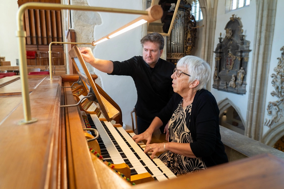 O găsesc pe Ursula în partea de sus a Catedralei, pregătindu-se la una dintre cele șapte orgi pentru concertul din cadrul Festivalului Ars SACRA. La mijlocul scării noi e o placă unde sunt înscriși toți organiștii din secolul al XV-lea și până în prezent. În partea de jos apare și primul nume de femeie: „Ursula Philippi – 1985-2015”. Chiar dacă a cântat și a predat muzica mai bine de jumătate de veac, repetă cu atenție cele două compoziții pe care le va interpreta în concert. Își mișcă capul în ritmul piesei și zâmbește blând pe tot parcursul repetiției. Curând i se alătură doi foști studenți – două generații cântă la aceeași orgă care răsună de 100 de ani în aceeași catedrală veche de peste jumătate de mileniu.