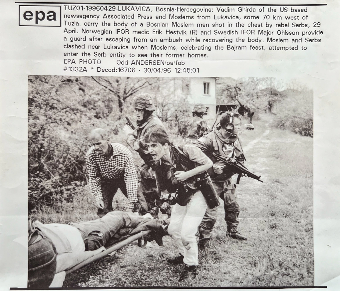 Vadim Ghirda avea 19 ani în 1990, când a fost angajat ca fotojurnalist pentru agenția Associated Press (AP), după ce a documentat mineriadele din București. Atunci a văzut pentru prima oară un om murind lângă el. În același an, încărcat cu echipament foto, a luat trenul spre războiul din Transnistria. De atunci a acoperit timp de șase ani războiul din Iugoslavia, cu toate repercusiunile lui, războiul dintre Israel și Palestina, războiul din Irak și alte masacre de pe harta lumii. Fotografiază în Ucraina din 2014. A câștigat multe premii pentru munca lui, printre care World Press Photo în 2017, Prix Bayeux-Calvados pentru corespondenți de război în 2022, iar în 2023 Pictures of the Year International și Pulitzer pentru fotografie de știri, cu echipa de la AP. Fotografia premiată a lui Vadim arată cadavre care zac într-o curte din orășelul ucrainean Bucha, în urma unui masacru comis de ruși.