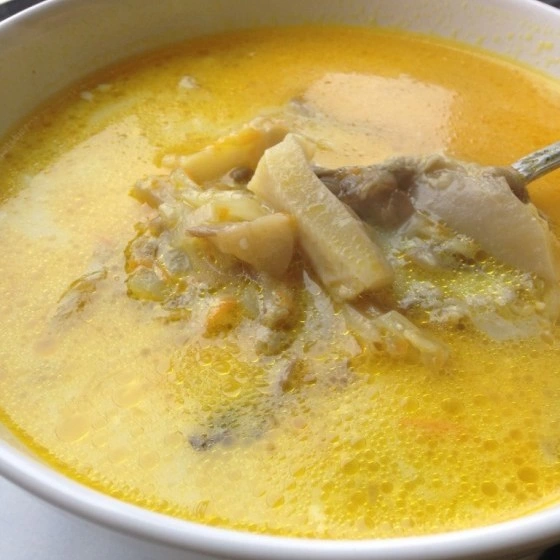 Românului îi place ciorba „de burtă” (doar că asta e din ciuperci, via); și cartoful (salată cu maioneză vegană via)