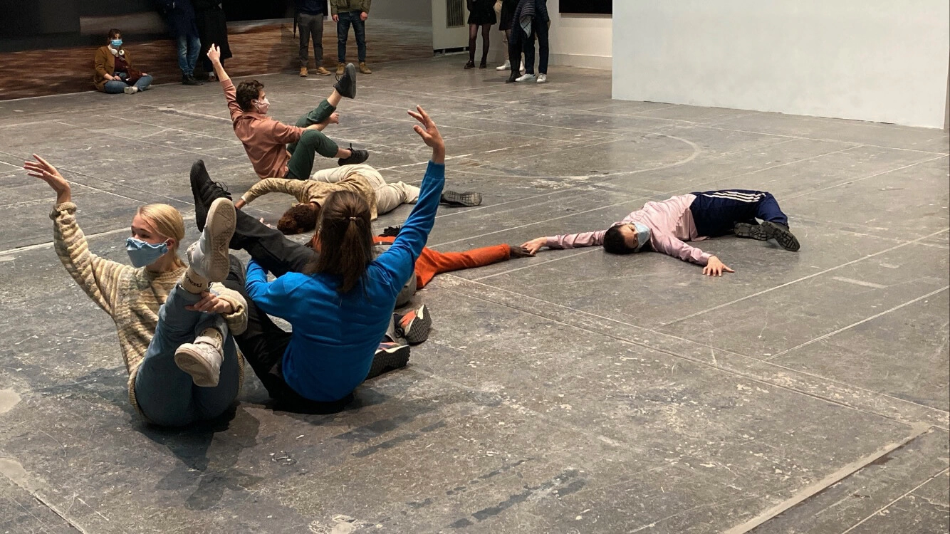 Anul acesta, singura acțiune performativă din expoziția internațională de artă „The Milk of Dreams” este lucrarea Alexandrei Pirici, Encyclopedia of Relations (2022 – ongoing). La mezaninul pavilionul Central, în peisajul unei atmosfere calme, vizitatori stau pe jos sau în picioare, în jurul celor șase performeri. Traversez încet, pe lângă printurile de mari dimensiuni ale artistei Louise Lawler, și caut strategic un loc ca să-i pot cuprinde cu privirea într-o imagine de ansamblu. Conceptul din spatele Encyclopedia of Relations pune sub semnul întrebării noțiunea de „enciclopedie” ca formă de clasificare sistematică și de separare a disciplinelor, și-aduce împreună elemente aparent fără legătură, inspirate din biologie, botanică sau inteligență artificială. Timp de aproximativ o oră, mișcările delicate ale performerilor m-au scos complet din propria temporalitate, și-am fost pentru un moment mai aproape de-o plajă, junglă, mai aproape plante, animale, sau mai aproape de mine. Simt că am participat la cea mai umană, și generoasă experiență posibilă de la Bienală.