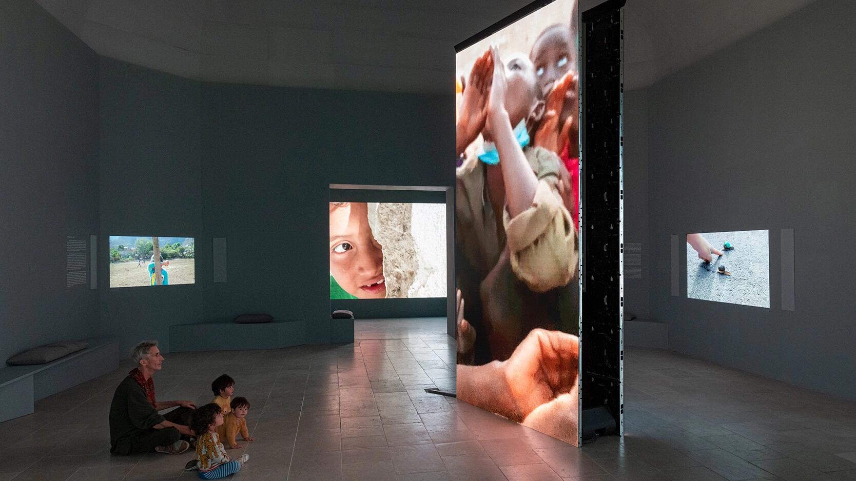 Deși am vizitat singură Bienala, nu prea ai cum să te simți singur. Uneori ajungi să treci prin expoziții cu aceleași grupuri de oameni, mai ales dacă aveți același ritm de mers, observat, analizat. La pavilionul Belgiei n-aveai loc să arunci un ac. Era plin de vizitatori de toate vârstele, încărcați cu ghiozdane, apă într-o mână, în cealaltă un telefon și-o baterie. Toți se uitau hipnotizați la expoziția artistului Francis Alÿs, The Nature of the Game. O arhivă de filme scurte cu jocuri de copii de pe patru continente diferite, adunate două decenii la rând, care surprind puterea imaginației colective în spațiul public. Fragmente din Slakken, o competiție de melci în Belgia, sau Pandemic Games în Mexic, unde un copil cu o mască roșie încearcă să îi prindă și îi contaminează treptat pe restul, și Papalote, un zbor cu zmeul în Afganistan.