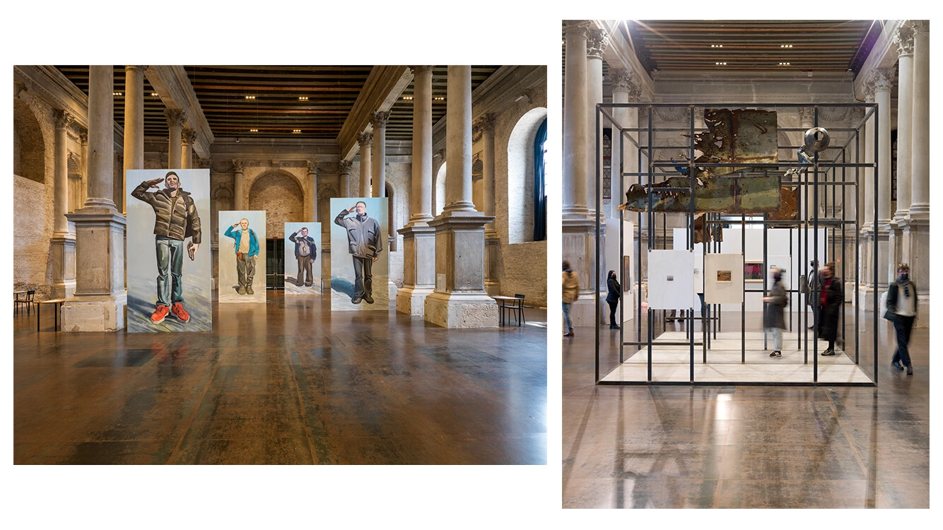 Din lista expozițiilor de la Arsenale, aș mai menționa două pavilioane care prezintă pentru prima dată în istoria Bienalei, două echipe de artiste-curatoare formată numai din femei. Singapore cu proiectul Pulp III: A Short Biography of the Banished Book, al artistei Shubigi Rao, care timp de 10 ani a cercetat istoria distrugerii cărților și a mers pe urmele celor care persistă să protejeze viitorul cunoașterii. Și Albania, care aduce un omagiu artistei Lumturi Blloshmi (1944-2020), dispărută în pandemie. Expoziția Lumturi Blloshmi. From Scratch prezintă autoportretele, picturile și fotografiile artistei în contextul politic și social din 1960 până în 2010.