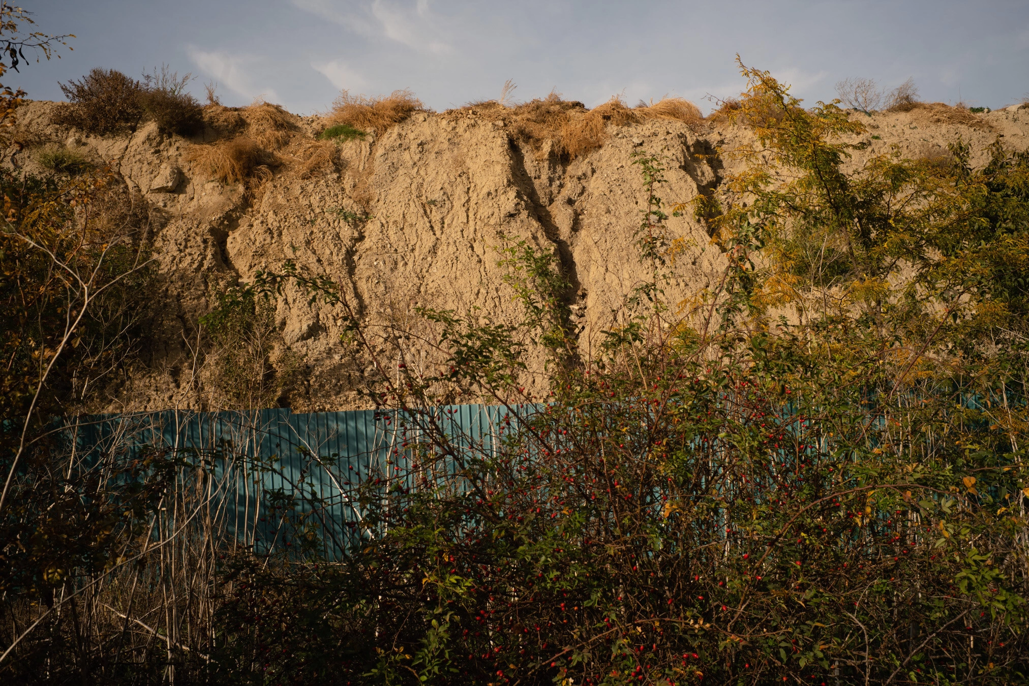 Glina este o comună de peste 8 mii de locuitori, formată din satele Cățelu, Glina și Manolache. Într-o după amiază de octombrie, la 28 de grade, în ziua documentării foto, totul părea pustiu, prăfuit și abandonat. Viața oamenilor se desfășura undeva în spatele porților închise. În rest, mașini în tranzit, praf și miros. Dacă urmezi o cale ferată dezafectată, poți să descoperi groapa de gunoi, închisă în 2019, în toată splendoarea ei. Se vede cu ochiul liber cum membrana care ar trebui să acopere groapa pe deasupra lipsește, iar stratul de pământ și vegetație a fost așezat prost, lăsând zone mari în care răsare gunoiul.
