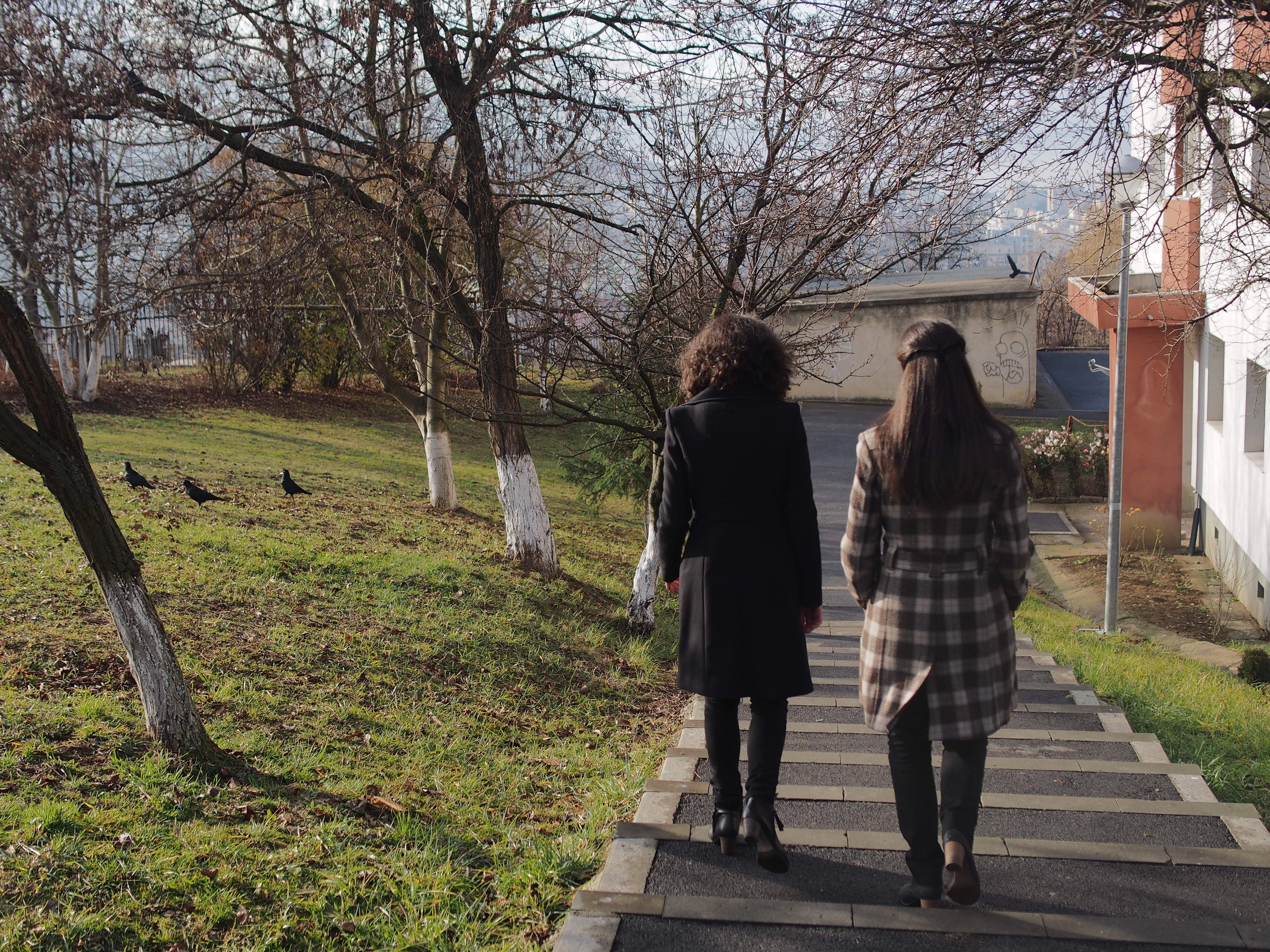 După ce vorbim mai mult de trei ore, le propun fetelor să facem o plimbare prin cartierul lor. Ceața s-a ridicat și e soare, nici urmă de zăpadă, deși e sfârșit de decembrie. Nu departe de casa lor e un cimitir pe un deal, de unde ai o panoramă impresionantă asupra Clujului. În copilărie, se dădeau pe acolo cu sania.