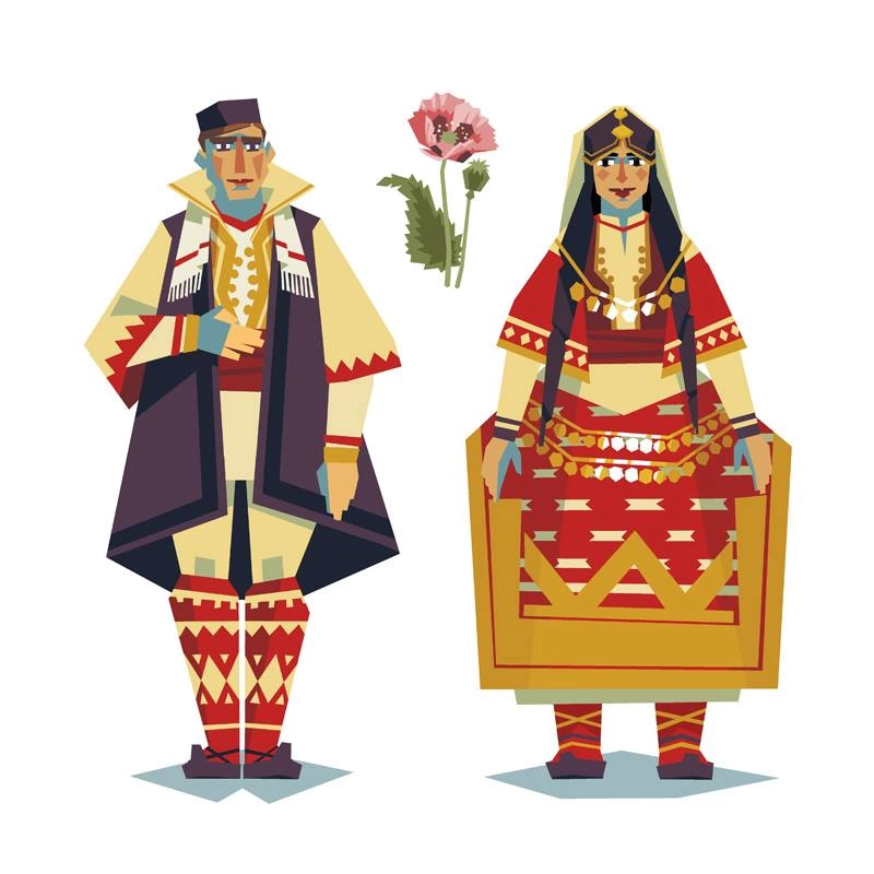 Acum doi ani, un grup de ilustratori din Cluj a venit cu ideea să refacă pachetele de cărți din copilărie, care reprezentau perechi îmbrăcate în costume naționale. Maria a desenat costumul tradițional albanez. Acela a fost momentul când a descoperit cât de mult seamănă costumele din diferite regiuni, cel din România, cu cel din Serbia, sau cu cel din Macedonia, cât de puternice sunt intersecțiile culturale între regiunile astea.