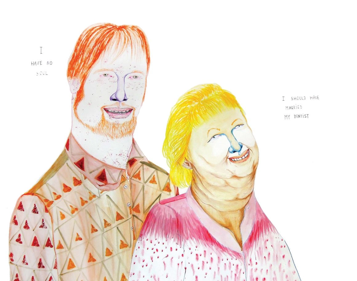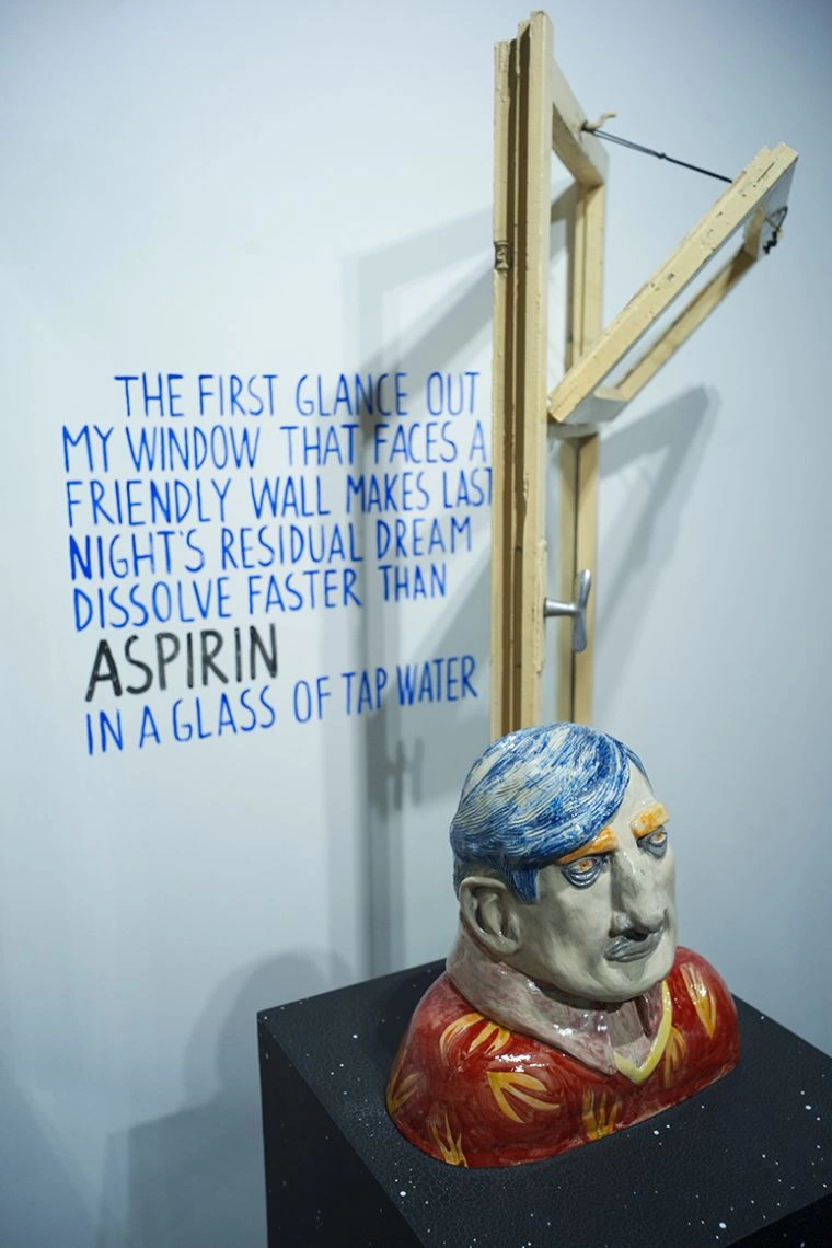 Altundeva se iubesc două personaje cu mult păr facial, iar Florin Condurățeanu - guru media în era OTV-ului - se uită direct în tine, din postura unui pop-icon american al anilor ’70. Adi Minune privește nostalgic în zare cu ochi de Coca Cola. Din când în când apar instalații cu cruci și un Isus mic cât un timbru lipit de tavan. Sau un tanc roz de șase metri. Pe peretele din baie e trântită o cadă din care se trezește un pitic pe muzica lui Mahler, iar la Galeria Mobius din București, personaje cu fizionomii stranii au ieșit din desene și s-au materializat în sculpturi din ceramică. Stau toate într-o izolare fragilă și expiră umanitate.
