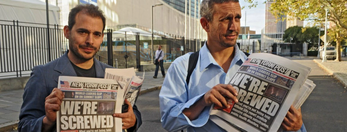 Și chiar a fost. Una din zecile de hoax-uri pe care activiștii americani Jacques Servin și Igor Vamos le-au copt în ultimii 20 și ceva de ani sub numele de Yes Men. Victime au fost mega-corporații sau instituții guvernamentale obișnuite să-și ascundă gunoiul sub preș, prin campanii uriașe de spălare a imaginii. De la mijlocul anilor ‘90 încoace, Jacques și Igor și-au construit un fel de artă a sabotajului și-au transformat farsa elaborată într-un mijloc de-a aduce pe agenda publică frânturi de adevăr indigest. Au făcut un site fals pentru Organizația Mondială a Comerțului, unde companiile erau sfătuite, printre altele, să cumpere voturi direct de la cetățeni. Au făcut o pseudo-conferință a Camerei Americane de Comerț, la care au anunțat că instituția își va revizui politica în materie de schimbări climatice, în defavoarea lobby-iștilor. Au distribuit 80.000 de exemplare dintr-o ediție falsificată a ziarului New York Times, în paginile căruia George W. Bush își făcea mea culpa. Ș.a.m.d.