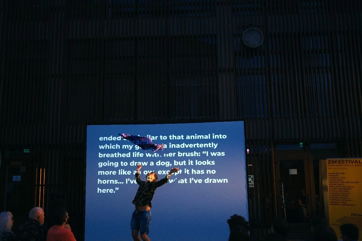 Insist asupra acestor aspecte tehnice și ambientale deoarece sunt deosebit de importante pentru orice festival literar. Puțini înțeleg ce rol masiv joacă munca din culise, amenajarea scenei, conceperea listelor sau chiar orașul în sine pentru un eveniment de acest tip. Centrul Sibiului, cu ansamblul său de scări șerpuite, clădiri săsești vechi și pasaje pietonale, a devenit arena extinsă a unor lecturi dintre cele mai diverse. Într-adevăr, festivalul a adus mai multe poetici laolaltă, din care publicul era liber să-și aleagă ce vrea sau, dimpotrivă, să respingă pe cine vrea. Fie că vorbim despre performance-ul carismatic al lui Macl, despre acuitatea conceptuală a poemelor lui van der Graaff, despre romantismul social din poeziile lui Cuc, despre ecourile Alt Lit ale unor Boldor și Mortensen sau despre problematizările queer din textele lui Néstore (ca să dau doar câteva exemple), diversitatea stilistică și tematică a fost mai mult decât evidentă. Dacă ar fi să identific un factor comun ce înglobează întreaga experiență Z9FESTIVAL, acesta ar fi conștiința macrosocială vizibilă în majoritatea fragmentelor citite vineri și sâmbătă. În acest sens, nu este o întâmplare faptul că wildcard-ul – oferit în cadrul unui concurs care a permis anual câte unui nedebutat ales de redacție să citească la festival – a ajuns la Flavia Dima, pe care o admiram deja de mulți ani pentru munca sa de critic de film. Ca poetă, speculez că ceea ce a separat-o pe Dima de alți participanți a fost, o dată, atenția asupra temelor politice urgente astăzi (fără de care, mi-e tot mai clar, nu se mai poate face literatură) și, a doua oară, contextualizarea lor într-un discurs ce iese din zona șabloanelor previzibile. Această tensiune atentă la corelația dintre politic și personal, pe de o parte, și dintre conținut și formă, pe de alta, poate fi observabilă la majoritatea autorilor chemați: de la Sy-Quia la Vlada, de la Yunusoglu la Buzu. Nu am să intru în detalii despre fiecare autor în parte, deci trebuie să mă credeți pe cuvânt: niciunul dintre acești scriitori nu vă va lăsa indiferenți.