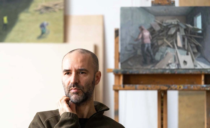 Am fost în atelierul pictorului Șerban Savu, care a reprezentat România la Bienala de la Veneția de anul trecut. Am vorbit pe larg despre drumul lui prin arte și idei, și despre cum s-a inspirat din Tițian, Poussin și din realismul socialist pentru a reda viața cotidiană ce se deschide în fața ferestrei, despre cum arată programul lui de atelier și nesiguranța continuă cu care munca artistică vine la pachet.