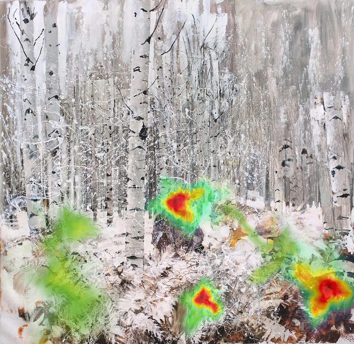 Shortly after the visit at the museum I received the results from BuyerBrain: “you liked the most this painting” Ana Iorga was writing indicating to Adrian Ghenie’s Persian Miniature. And this came out from the intensification of the activity in the frontal cortex. “Simplistically speaking, when you develop a positive reaction of attraction towards a stimulus you have a stronger activity in the left hemisphere and when you develop a negative reaction of rejection towards the message you are seeing, you have a stronger activity in the right hemisphere. We follow the activity in the frontal right and left hemispheres and the modification of alpha waves which dominate during moments of relaxation and the beta waves dominating during moments of concentration on a certain cognitive activity” Ana told me. In her opinion, the attraction towards Ghenie’s painting could be explained by the high number of unclear elements that must be decoded and which stimulated a high cognitive interest on my behalf. I don’t know if the work of detective or the memory of the first time I saw live this painting, covering a whole wall with the colorful tension between man and nature, played a role. I remained many minutes in front of the canvas displayed in Darwin’s Room, at the Romanian Pavilion from Venice Art Biennale, minutes that, most probably, were enough for a connection to form in a deep corner of my mind.