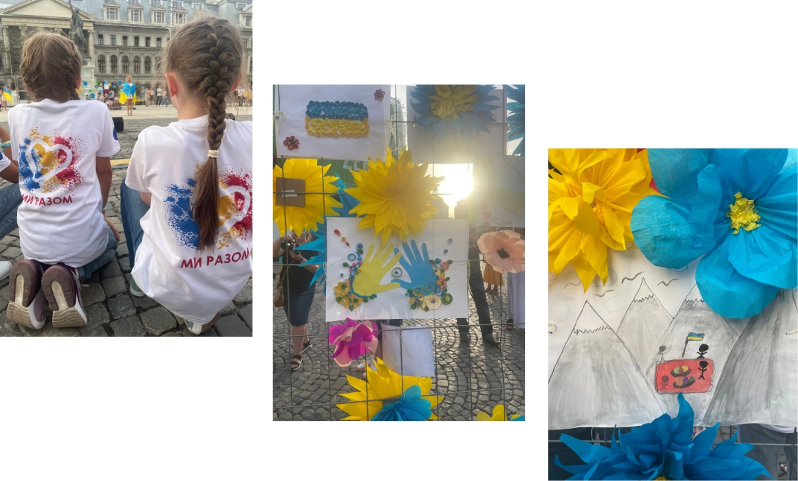 The celebration starts with a group of young women and children singing the Ukrainian National Anthem, Ще не вмерла України і слава, і воля. Like many who only searched for its meaning this year, I was struck by its first words, which are literally “Ukraine has yet to perish.” It resounds throughout the square and there’s an eerie silence around, as if this bustling, central space in Bucharest that never shuts up has suddenly frozen in time. I film the moment and the people around me, most of them women and children, who are mouthing the lyrics, hands to their hearts.