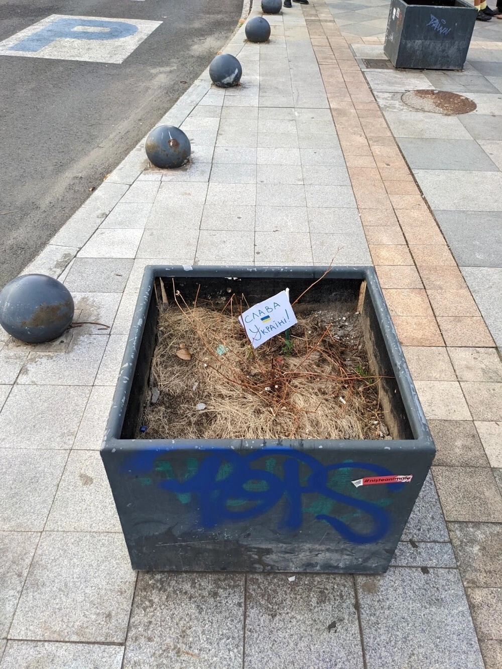 The atmosphere at the event reminded me of the first Maidan, where I participated as a student in 2004, and the second Maidan of 2013/14, which I already missed, being a migrant, but visited as a guest in my country of birth. That was a very familiar tradition of loud, intense chanting, and some of the slogans chanted on this Independence Day stem from 20 years ago. Such was the famous ‘hanba’ (‘shame’) that every Ukrainian politician was destined to hear at some point in his or her career. Others were the heritage of the second Maidan: ‘Glory to Ukraine,’ ‘Death to the enemies,’ ‘Ukraine above all,’ ‘Putin is a dickhead’ (Путін - хуйло, see below) Still others originated in the first days of war and spread through all Ukrainian TV channels and online media: ‘Russian warship, go fuck yourself,’ ‘Glory to Ukraine - glory to the nation - perishment (pizda) to the Russian federation.’