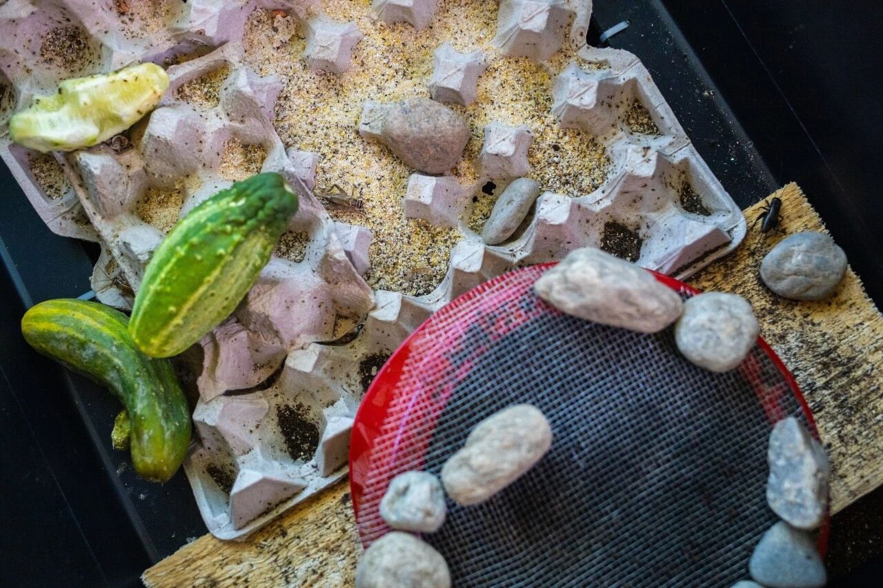 Starting this year, thousands of crickets live at Țebea, in a room decorated with linoleum flooring and black plastic grates. Vlad Abrudanu, a 20-year-old Cluj-born man with a degree in Psychology, who moved there this year, is the one in charge of raising them. Adi says he’s brought the crickets in from Germany and Italy and that he wants to mate them with local crickets. He makes a “cricket protein” solution from them, which allegedly benefits the immune system. He claims he doesn’t kill the insects during the preparation process, but allows them to enter a hibernation state. Before becoming a human cure, the critters jump around in egg cartons filled with hominy, cucumbers, and vials of “electromagnetic grains.”