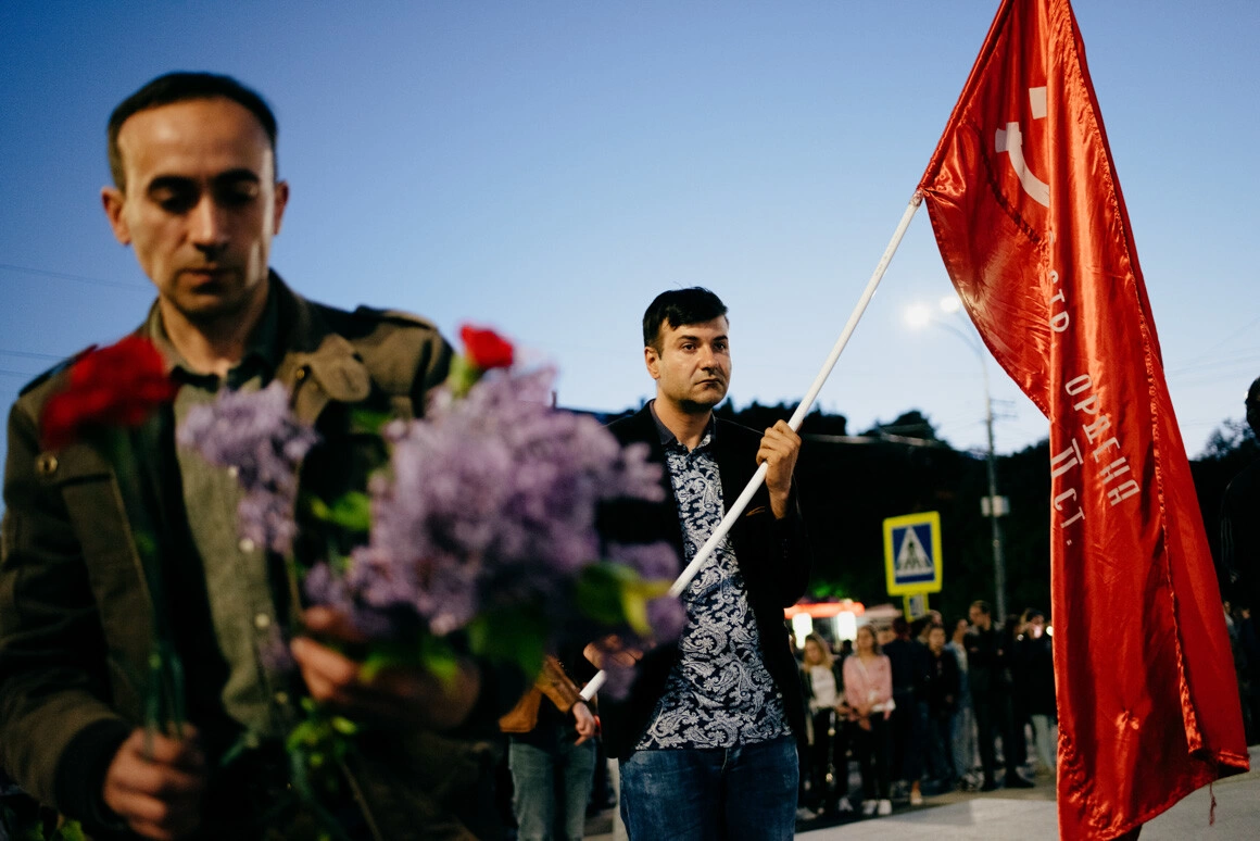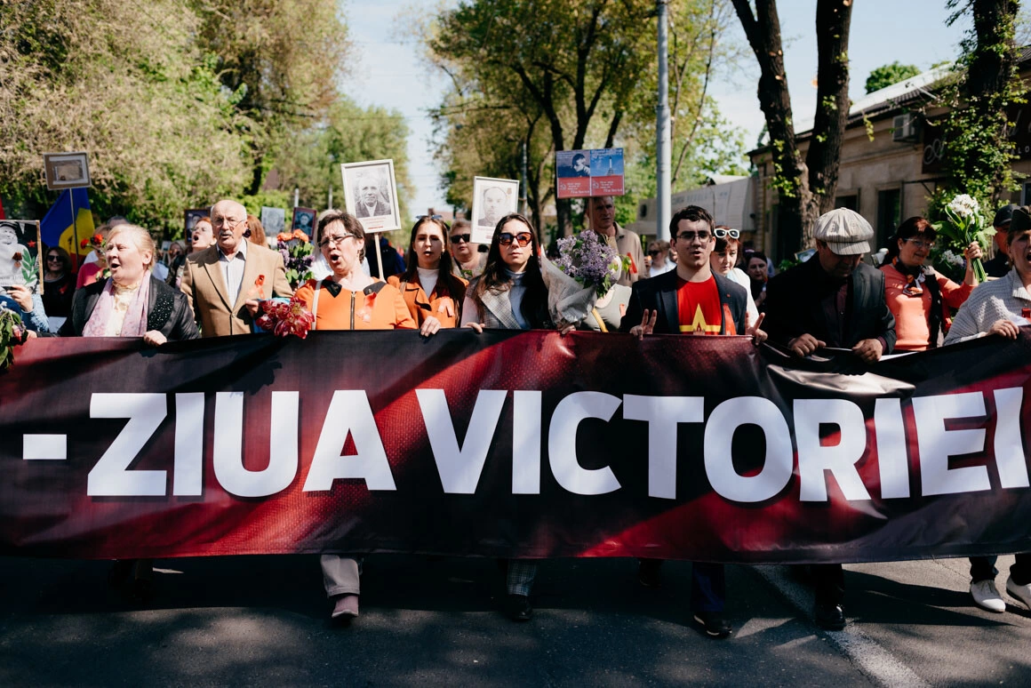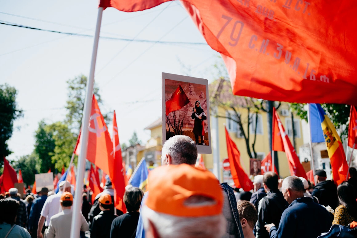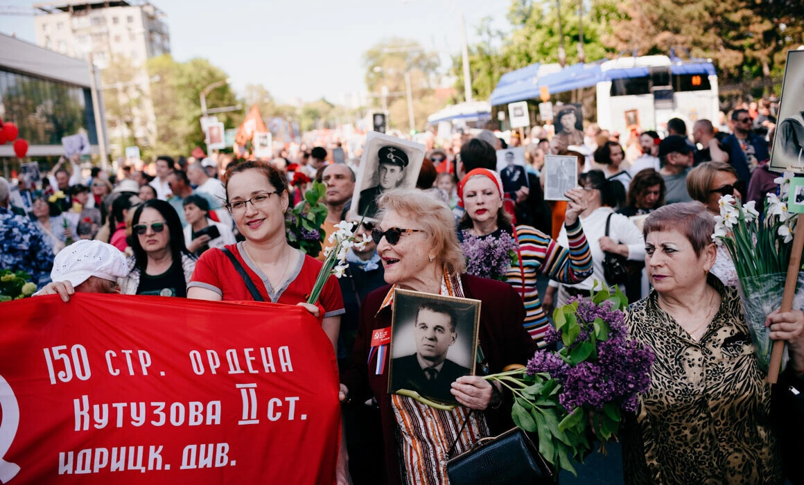 It is about 3.5 kilometers from Grand National Assembly Square to the "Eternity" memorial complex. I arrived late to the square and had to walk very fast to catch up with the beginning of the march. How many times did I film the Victory Day march? I can't say exactly, but almost every year. This day has always been something special to me, both as a child and in the "new world" after 2014, when the war in Donbass began. This day, Victory Day, was beyond political views - it was unambiguous. In 1945, humanity defeated fascism, and that is not a topic for discussion. Humanity defeated the highest evil, and for that, many millions of lives had to be sacrificed. I used to think that such a lesson could not pass without a trace. We were bound to learn from it. What do I see now? I'm walking very fast, walking around a crowd of thousands of people. Many people are holding red flags of the USSR or the flag of victory, they are chanting: "Victory! Victory!", "Fascism will not pass!", "Hurrah!" There are blissful smiles on their faces. They are holding portraits of their dead relatives, fathers, grandfathers, who gave their lives to stop fascism, so that no one else would die... At that time, just 160 km from Kishinev, an air-raid alarm sounds in Odessa. Thousands of citizens are forced to hide in bomb shelters from Russian missiles. Not long ago, a Russian missile flew into an apartment building in Odessa, killing eight people, including an infant. Bucha, Irpin, Borodianka - the Russian invaders behaved no better than the Nazis in World War II.